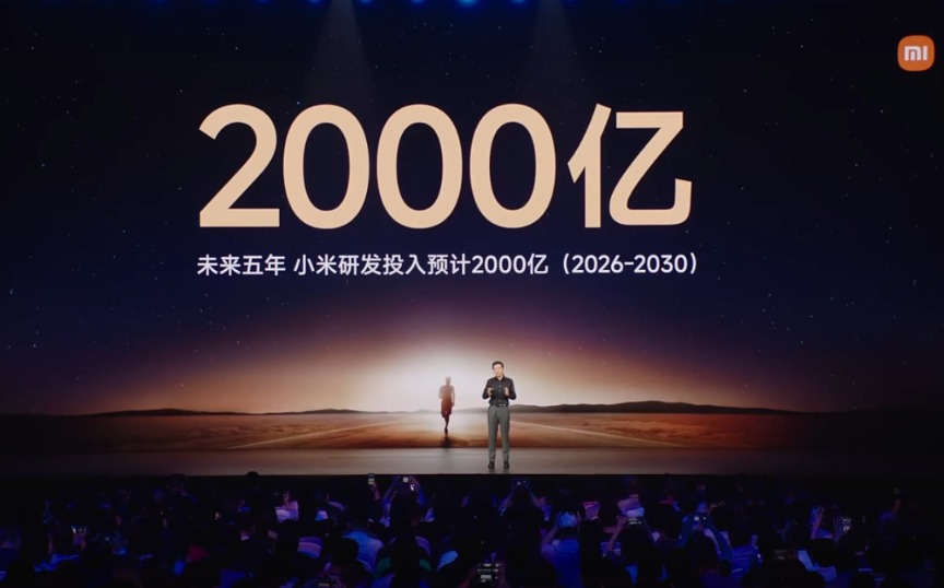 此外,小米称以技术为本,坚持高端化引领。雷军表示,未来5年(2026年至2030年),小米研发投入预计为2000亿元。